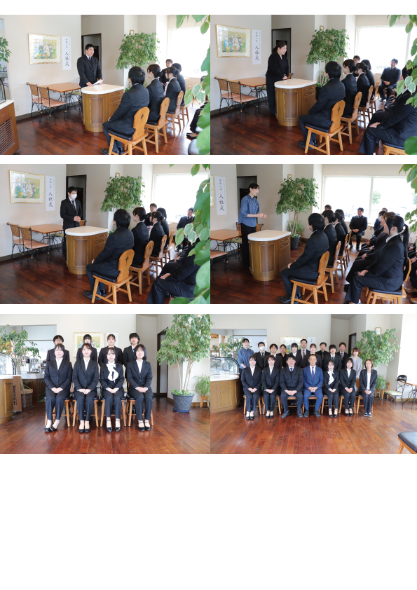 社長の祝辞に続き各部の先輩から温かな言葉を受け、社会人としての第一歩を踏み出しました。 明日から約一ヶ月の研修を受け、その後それぞれの配属先での仕事になります。